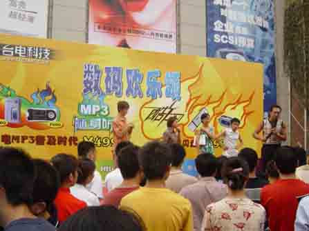 今天上午,在太平洋大廈門前北京商科公司正在舉行題為“數(shù)碼歡樂頌”的大型路演。