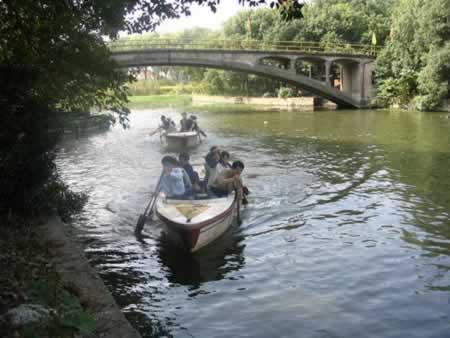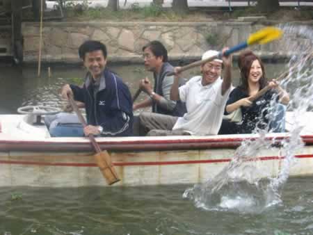 劃船比賽開(kāi)始了,第一組有策略得想把第二組擠到一邊。