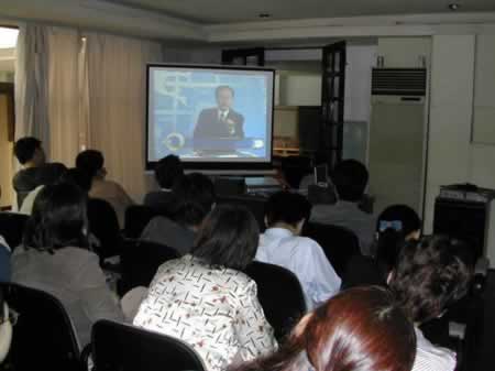 大家正認(rèn)真地觀看“余世維的光盤(pán)”