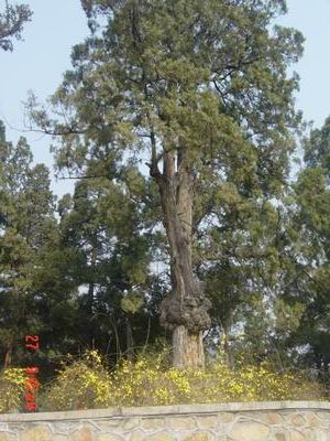 一路上:古樹與黃花相依