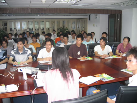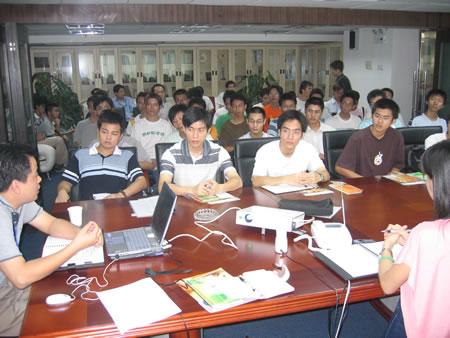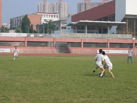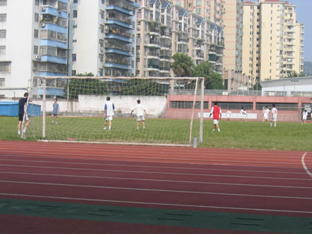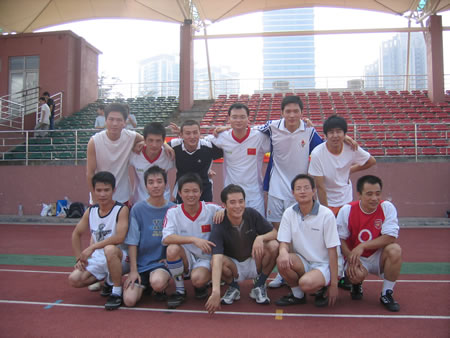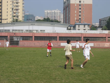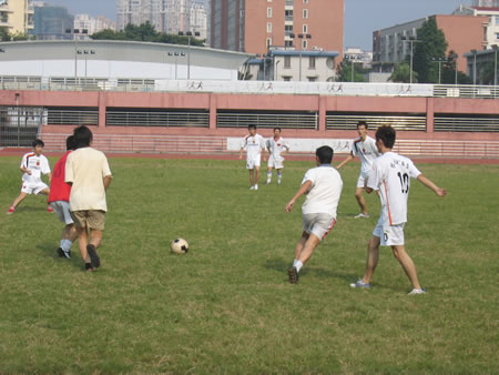 在培訓結束之后,在華師大的綠茵場上,在震天的吶喊聲、助威聲中,商科集團和塔內(nèi)PC聯(lián)盟的足球賽進行的熱火朝天,年青的小伙子們用沸騰的熱血和揮灑的汗水在足球場上展現(xiàn)著自己最帥的一面。