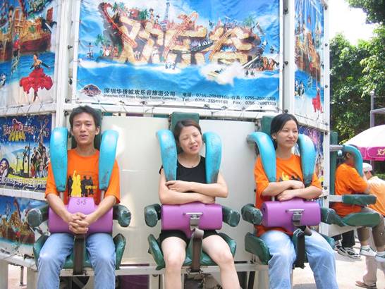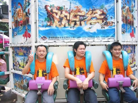 歡樂谷招牌項目:太空梭,你看中間那位帥哥是多么忐忑不安