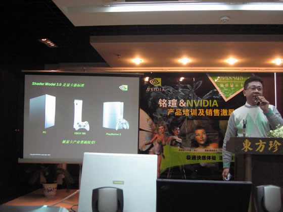 緊接著NVIDIA高級渠道銷售經(jīng)理陳祖旋先生現(xiàn)場介紹了NVIDIA公司產(chǎn)品線路發(fā)展計(jì)劃。除了對陰影渲染優(yōu)化(SM3.0)、高精度動態(tài)渲染(HDR)和超級顯卡并聯(lián)(SLI)等NVIDIA最新顯卡技術(shù)做了詳細(xì)講解外,還重點(diǎn)介紹了NVIDIA先進(jìn)的Purevideo視頻技術(shù),目前NVIDIA旗下高端Geforce7800系列產(chǎn)品的Purevideo視頻技術(shù),已為用戶提供了高達(dá)1080P高清晰度視頻,表示Purevideo視頻技術(shù)將成為NVIDIA在2006年重點(diǎn)發(fā)展的技術(shù),將會讓更多終端用戶體會到高質(zhì)量的家庭娛樂享受。針對2005年下半年NVIDIA顯卡產(chǎn)品供貨緊張的狀況,陳先生表示,目前NVIDIA能夠針對中高端顯卡產(chǎn)品提供足夠的現(xiàn)貨供給,2006年NVIDIA更多主力顯卡產(chǎn)品將會采用技術(shù)先進(jìn)的90納米制程工藝,90納米技術(shù)在芯片能耗,成本,以及產(chǎn)能方面的綜合優(yōu)勢,將會幫助NVIDIA為用戶提供足夠的芯片供應(yīng)。