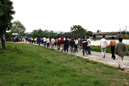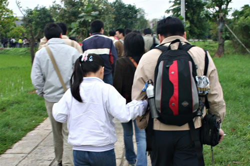 (開始步行進入自力村)
