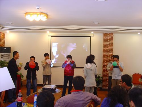 哈哈,吹氣球游戲,你可別小看了這個小時候玩過的游戲,我們的游戲規則是要把氣球吹爆,這不僅需要很大的肺活量還需要選手有一定的膽量,那大氣球在你不知情的時候突然爆了,你試試怕不怕的~