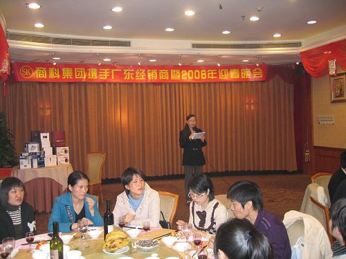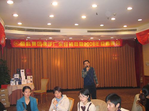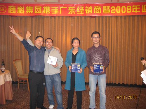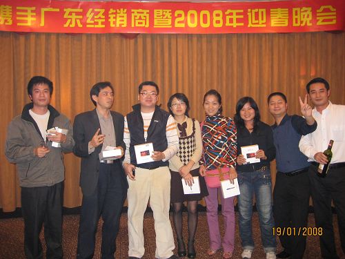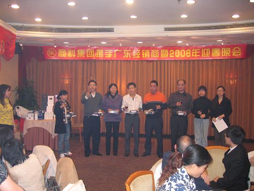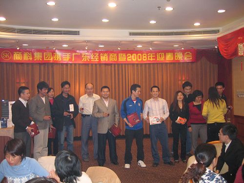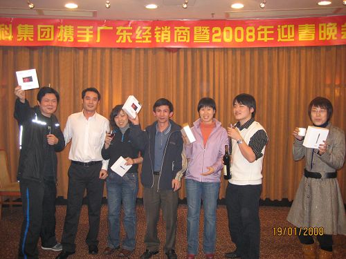 商科廣州分公司為了答謝經(jīng)銷商在過去的一年中給予的支持和厚愛,于1月19日在同甘同味酒店舉辦了"商科集團(tuán)攜手廣東經(jīng)銷商2008年迎春晚會"。參與本次迎春晚會的嘉賓有商科集團(tuán)董事長孫武源先生、商科集團(tuán)副總經(jīng)理劉險峰先生、商科集團(tuán)廣州分公司經(jīng)理 李小剛先生、商科集團(tuán)市場部經(jīng)理 陳濤女士、商科集團(tuán)臺電外設(shè)事業(yè)部產(chǎn)品經(jīng)理 呂家起先生以及70多位遠(yuǎn)道而來的廣東省經(jīng)銷商代表們。