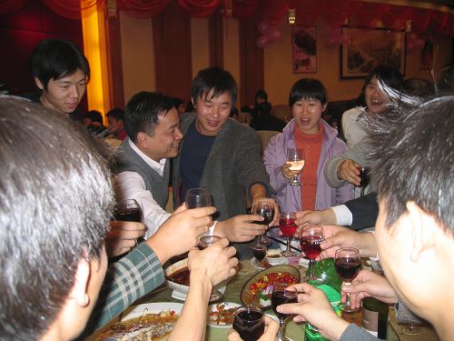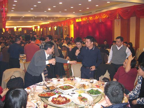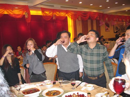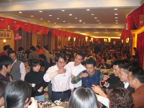 接下來,進(jìn)入晚宴,席間杯斛交錯,你來我往,好不熱鬧。