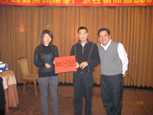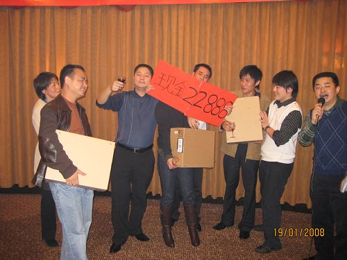 接下來,也是最激動人心的時刻,由商科集團(tuán)董事長 孫武源先生頒出第四組2007年“年度優(yōu)秀代理商”,共4名。他們每人除了獲得萬元現(xiàn)金外,還獲得一臺名牌筆記本,獎品真是太豐富啦!