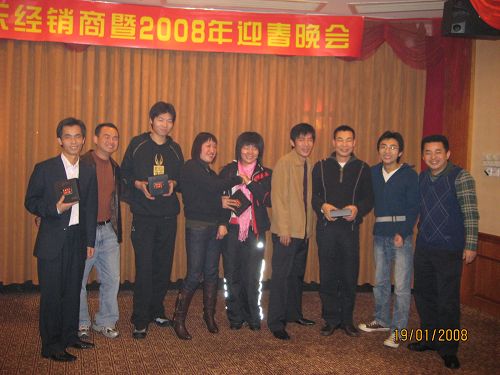 大家都吃喝的差不多的時候,大會最令人興奮的頒獎及抽獎活動便拉開了帷幕。商科廣州分公司為本次大會準(zhǔn)備了現(xiàn)金大獎、名牌筆記本、高檔DV及相機(jī)、臺電MP3、臺電攝像頭等在內(nèi)的豐富獎品。由商科集團(tuán)市場部經(jīng)理 陳濤女士頒發(fā)第一組2007年“年度優(yōu)秀代理商”,共六名。