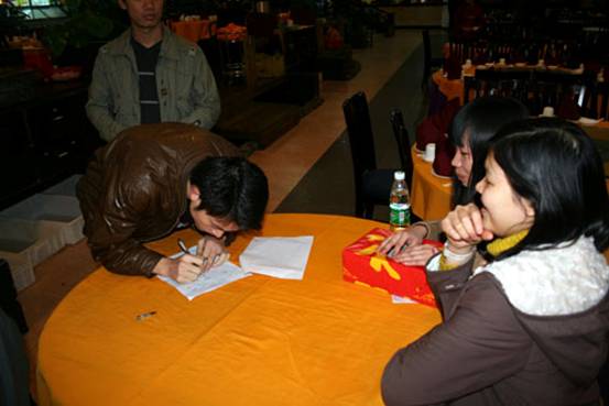 下午4時整,全體與會人員懷著興奮的心情,準(zhǔn)時來到位于廣州市區(qū)大嘴漁港飯店的禮堂大會場。在進(jìn)入會場之后,工作人員為大家準(zhǔn)備好了抽簽箱。每人都能抽取一個編號,根據(jù)這個編號大家就能參加商科傳統(tǒng)的抽獎活動了。