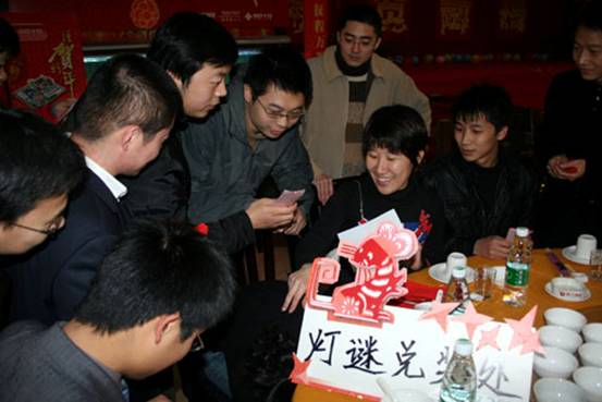 先到場的工作人員早已經(jīng)為大家準(zhǔn)備好了燈謎競猜活動。在晚會開始之前,先到的同事和領(lǐng)導(dǎo)們興致勃勃的加入燈謎活動之中。