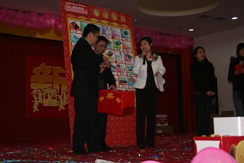 在晚宴進(jìn)行的過程中,本次晚會的重要項(xiàng)目,也是同事們最期待的主要活動:幸運(yùn)大抽獎開始了。
