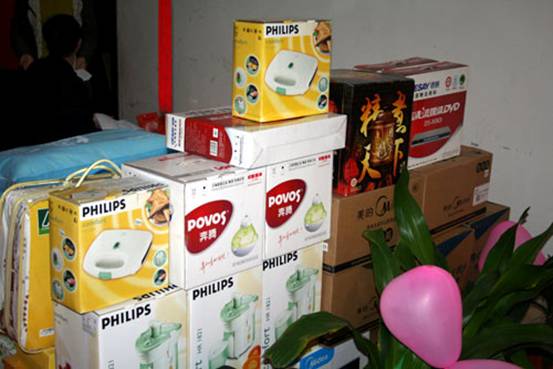 面包機(jī)、電烤箱、手表、高檔床上用品、DVD播放器……獎品十分豐富