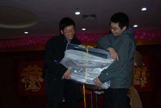 抽獎單元持續(xù)進(jìn)行了兩個多小時,現(xiàn)場氣氛非常火熱,大家都懷著期盼和興奮的心情期待著自己的禮物。公司準(zhǔn)備的非常豐富,再加上公司孫總、熊總、劉總等領(lǐng)導(dǎo)層及各位產(chǎn)品經(jīng)理不斷輪流上臺為大家奉獻(xiàn)額外的現(xiàn)金大獎,使得中獎率高達(dá)95%以上,幾乎每個同事們都拿到了屬于自己的新年禮物。
