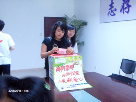 2008年5月12日下午2點58分,我國四川汶川地區發生了7.8級大地震.目前已經造成造成多人死亡,現在有更多的人無家可歸。面對四川的百年不遇的災情,商科人的心情萬分焦急和關注中!雖然我們力量十分有限,但是我們完全可以用自己能做的方式去盡一點力,表達一份愛心!在此,我們全體員工自發的進行了向災區獻愛心募捐活動。