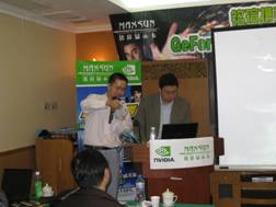 2009年3月10日下午14時,銘瑄攜手NVIDIA GeForce內功威力四射全國經銷商培訓會東莞分站部分的會議正式在東莞篁勝酒店舉行。本次培訓會主要針對銘瑄的顯卡產品和NVIDIA的高精尖技術向與會的經銷商代表進行講解,幫助經銷商樹立品牌信心,在新年的開端也是銷售旺季來之際,鞏固以往的銷售成果,攜手銘瑄共創輝煌。同時我們還邀請來了NV方面的代表,為大家講解了NV的專業顯卡Quadro和NV的CUDA技術以及物理加速技術。