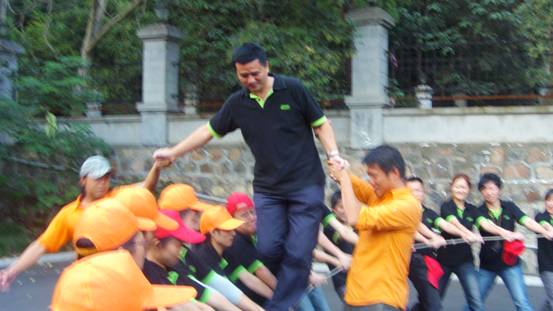 此時,日已西斜。教練拿出一根長繩讓我們拉成一圈,繩圈上承載著領導對我們的信任,承載著我們的責任,每個人都異常專注、用心的盡著自己的全力。我們的孫副總也是非常輕松和堅定的對教練說:“我信得過我的團隊,他們一定能讓我安全的走完繩圈!”