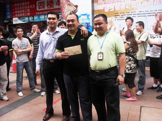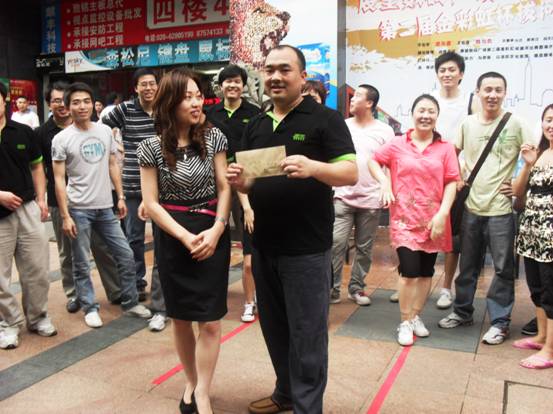 展望數(shù)碼廣場的副總為我們頒獎(jiǎng),后面的同事們啊,個(gè)個(gè)可都是得意洋洋的