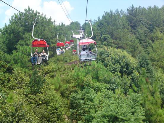 千島湖真是天藍(lán)山青,乘坐纜車讓我們飽覽了它的清麗秀美,大家都迫不及待地把這美景收在相機(jī)里!