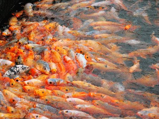 吉祥鎖 鎖島緊鄰魚島,魚島上有很多魚,我們準備了些食物喂魚, 魚兒們?yōu)榱藫尩绞澄,它們擠作一團。
