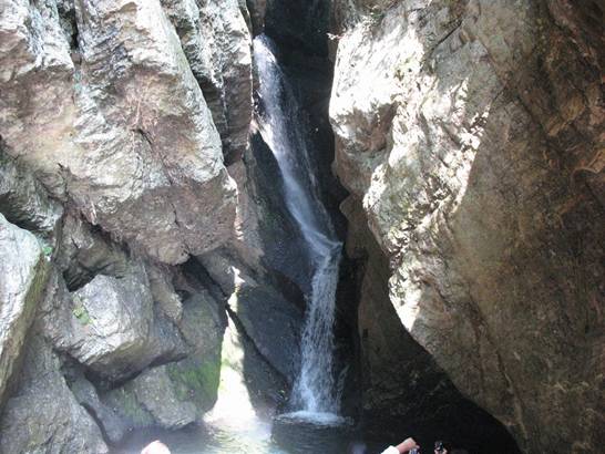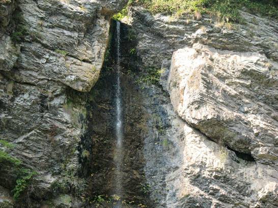 一線瀑 前行數(shù)米,老遠就聽見驚天動地的“雷”聲,走近了才知那瀑布隱藏在一個巨大的石洞內(nèi),像龍嘴里吐出的白練,故稱之為龍喉瀑,上游之水如游龍一般通過一個跌巖穿入一個石縫,在石縫窟窿里形成一個“之”字形瀑布,因有石洞包圍,垂落下來時,其聲如虎狼咆哮,真是壯觀和驚心動魄。