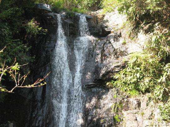 沿著曲折的棧道,我們難得看到兩支瀑布一大一小在同一巖石上傾注,猶如夫妻朝夕相伴,夫妻瀑布是也。 景致最美的是小黃果樹瀑布,瀑高20余米,瀑寬約15米,貼石壁傾斜而下,水勢滔滔,水流飛泄時,因碰撞凹凸不平山巖而產(chǎn)生水花四濺,飛飛揚揚,猶如大霧彌漫,雄渾瑰麗。