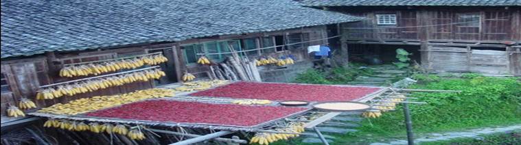 平安寨是龍脊山上的壯家村寨,海拔800多米,全村100多戶人家,幾百人,世世代代都以務農為業,油光锃亮的紅辣椒就是這里的特產。中外馳名的龍脊梯田改變了這座山寨的生活方式。山寨依然很平靜,但變得一點兒也不寂寞。