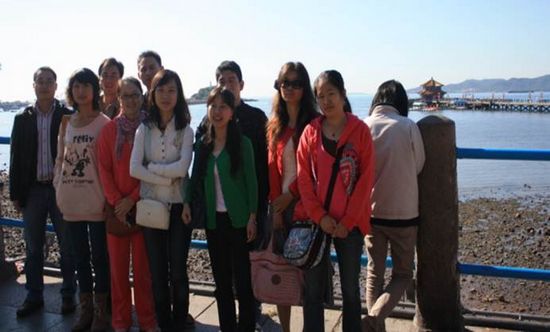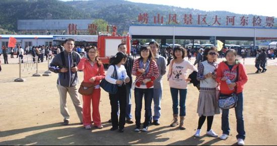 這去的是極地海洋館,那個表演真是讓人叫決呀。這些小家伙們真是太可愛了。 大連的行程到這兒基本上就結束了,由于天氣原因明天的一天就只能是在船上和車上渡過了。 我們的下一站青島,希望在青島能有個好天氣。青島三環海、一面依山,海岸迂回曲折,山色郁郁蔥蔥,兼有山海之勝。市區的房舍建筑層壘參差,風格各異,但多為紅瓦覆頂,兼有歐亞美各洲和中國民族風格,與碧海、藍天、綠樹共同構成了城市特有的風貌。位于青島東北部的嶗山旅游風景區,一向以山峻石奇,林木繁茂、古跡眾多的而著稱。青島著名的旅游景點還有:棧橋、小青島、魯迅公園、海水浴場、八大關、嶗山的上清宮與下清宮、一灣之隔的黃島、平度的天柱山魏碑、即墨的田橫島等等。 都說來了青島就一定要上嶗山,它是山東半島的主要山脈,嶗山的主峰名為“巨峰”,又稱“嶗頂”,海拔1132.7米,是我國海岸線第一高峰,有著海上“第一名山”之稱。它聳立在黃海之濱,高大雄偉。當地有一句古語說:“泰山雖云高,不如東海嶗。” 到了青島天氣果然很好呀,上一張咱們的合影吧,看看大家都像沒睡醒的樣子,人沒到齊呀。