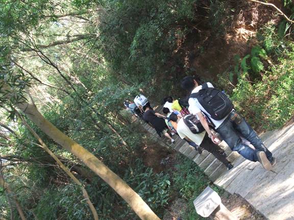 進軍好漢坡!!沿著人工階梯順級而上,幾近90度的坡度讓人咋舌。