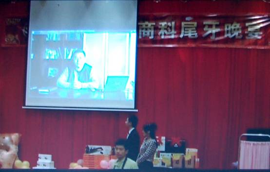 商科集團(tuán)總經(jīng)理孫武源先生的聲音響徹會場,投影布上出現(xiàn)孫總為在座的各位經(jīng)銷商朋友致辭的畫面,DV畫面里孫總對2010年深圳商科的工作做出了肯定,對2011年商科的發(fā)展態(tài)勢表示樂觀,并祝福各位經(jīng)銷商朋友兔年大吉大利。大顯身手。財(cái)運(yùn)亨通。事業(yè)興旺。全家幸福!