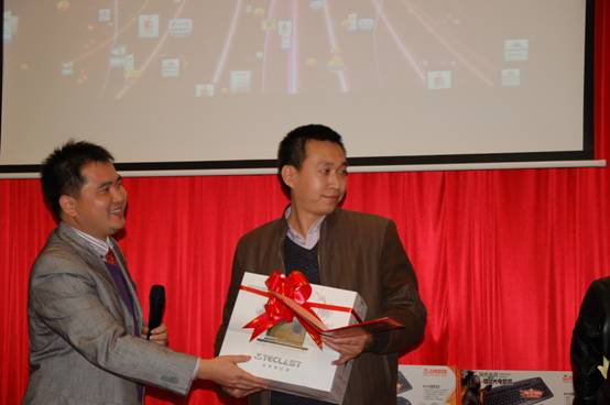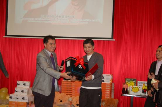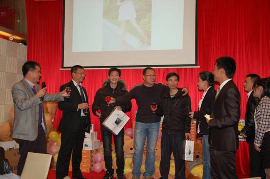 深圳分公司余經(jīng)理上臺為晚宴抽取了五名三等獎,獎品分別為梅捷主板一塊、銘瑄主板一塊、銘瑄顯卡一塊、臺電移動硬盤一個、臺電MP4一臺;