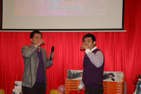 節(jié)目熱鬧非凡的進(jìn)行著,偶爾穿插的有獎問答.腦筋急轉(zhuǎn)彎活躍著現(xiàn)場氣氛,公司為經(jīng)銷商特別準(zhǔn)備的三、二、一等獎也不斷揭曉;