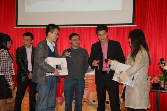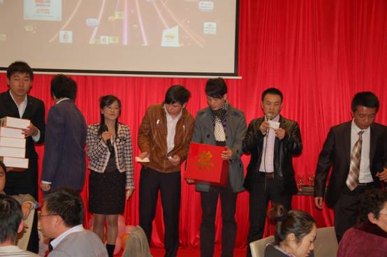 晚宴現(xiàn)場還同時進(jìn)行了抽獎活動,獎品尤其豐厚,總部產(chǎn)品事業(yè)部趙愛軍經(jīng)理。賈慶楓經(jīng)理上臺抽取四個特別獎,并為獲獎?wù)哳C發(fā)獎品;