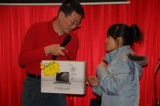 隋振遠(yuǎn)先生上臺為晚宴抽取一等獎一名,獎品為臺電筆記本一臺;