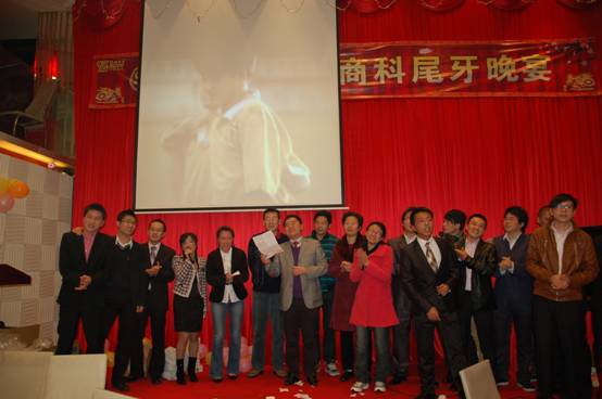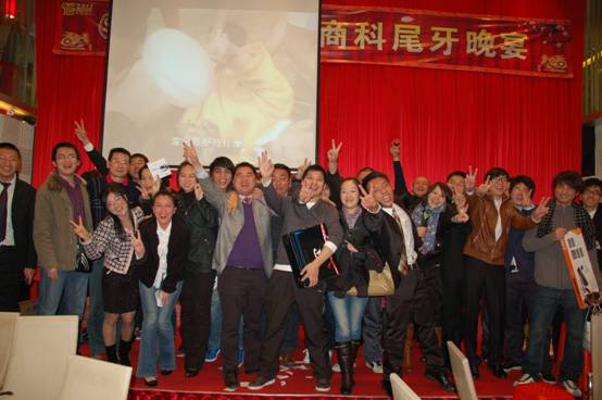 晚宴進(jìn)入最后高潮,商科各位公司同仁一起上臺答謝經(jīng)銷商朋友,并高唱<<朋友>>,在歌聲中緩緩落下帷幕。。。