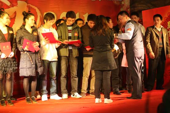孫總致辭 此次評選了敬業(yè)員工獎和部門之星,還有優(yōu)秀主管和經(jīng)理,這些獲獎?wù)呤俏覀兯腥说陌駱樱M?011年,能有更多的榜樣!