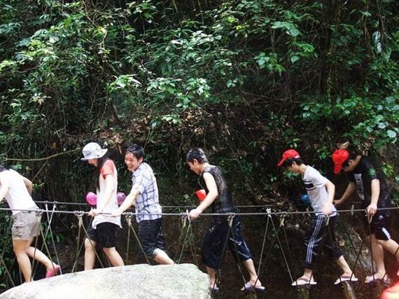 走進(jìn)銀盞谷,第一節(jié)目就是森林溯溪探險(xiǎn),從山腳一路溯溪而上,走獨(dú)木橋穿鐵索沿水流彎彎曲曲到達(dá)山頂,可能急著去漂流一路上走馬觀花然后沿山路而返,進(jìn)行今天最重要的節(jié)目------黃龍峽漂流!!