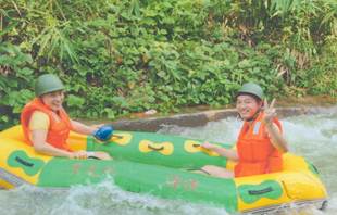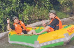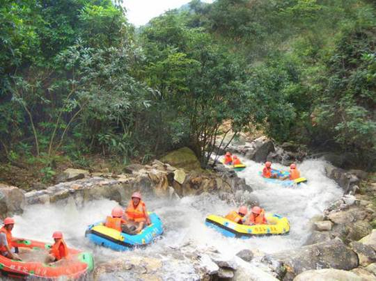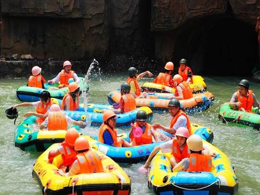 漂流河道設(shè)計(jì)者,巧奪天工,河道順山勢無盡曲折旋回,漂流舟高高躍起,左右回旋,扎入水中,又高高躍起,又高低回旋扎入水中……讓漂流者充分享受竄上云霄,極速墜地的刺激有驚無大險(xiǎn)!不過感覺最爽最刺激還是中游處的黑隧道電閃漂!