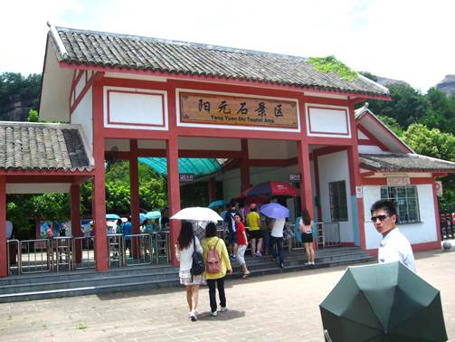 經(jīng)過(guò)三個(gè)半小時(shí)的車(chē)程,中午時(shí)分,終于來(lái)到了丹霞山景區(qū)。下車(chē)的時(shí)候,雨霽天晴,飽餐一頓后,迫不及待的,涂防曬霜,噴蚊怕水,撐太陽(yáng)傘、穿防曬衣、帶帽子、太陽(yáng)眼鏡,防曬防暑的裝備一應(yīng)俱全,在大家整裝后,我們開(kāi)始朝著第一個(gè)目的地——元陽(yáng)石風(fēng)景區(qū)出發(fā)!