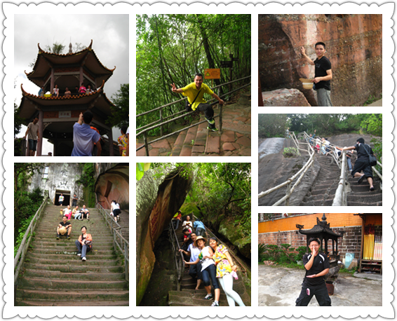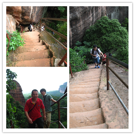 因天氣太熱,有些同事便在這里止步了,但還有不少的同事,繼續(xù)前進(jìn),目標(biāo)細(xì)美寨。丹霞的山,都不是很高,但以為很容易爬,就大錯(cuò)特錯(cuò)了,一段快90度的山路嚇怕了不少女同事,看來(lái)丹霞山還真不容易爬啊。