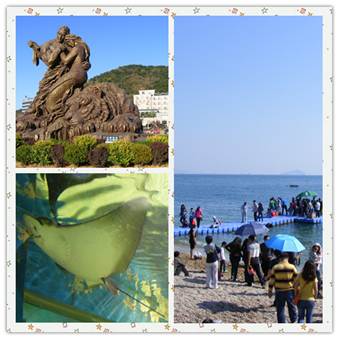 第三天也是我們行程的最后一天了,這一天行程也很緊湊首先來到了俄羅斯風情街,在哪里才真正知道了歐洲的建筑風格。最后一個景點也是此行我最期待的棒棰島,棒棰島位于大連市濱海路東段,大連市東南約5公里處。是一處以山、海、島、灘為主要景觀的風景勝地。國內(nèi)幾大國賓館之一、著名的棒棰島賓館就坐落在這里。這里三面環(huán)山,一面瀕海;北面為群山環(huán)繞,南面是開闊的海域和平坦的鵝卵石沙灘。棒槌島名字的來歷是因離岸500米遠處的海面上有一小島突兀而立,遠遠望去,極象農(nóng)家搗衣服用的一根棒槌,故稱棒槌島。在哪里體會了大連海水的美麗。大連極地海洋世界那里是孩子們的天堂,國慶人山人海我和同事還是帶著兒子看了動物表演!其樂無窮撒!
