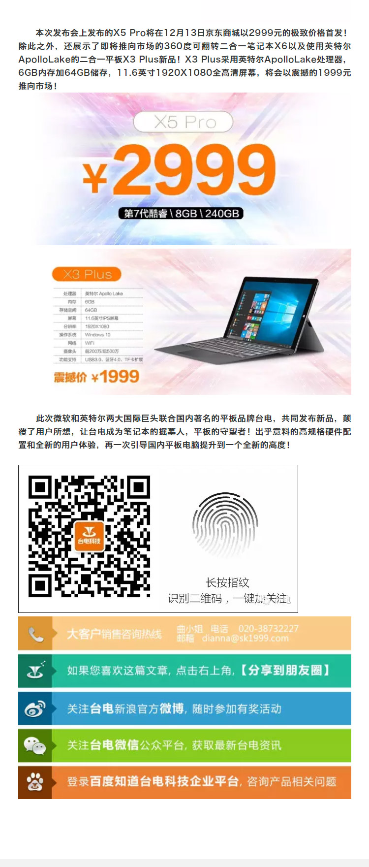 臺電微軟英特爾第七代酷睿二合一平板發布會