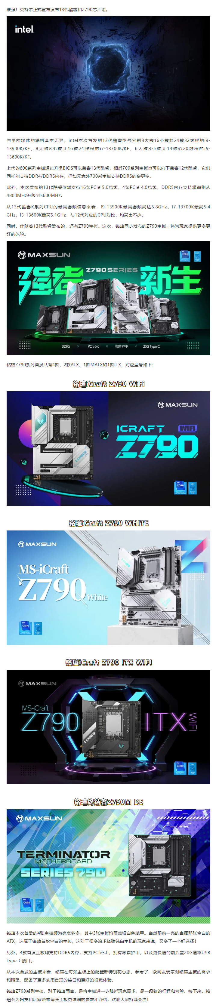 強者新生 英特爾13代酷睿發布,銘瑄Z790系列同步首發