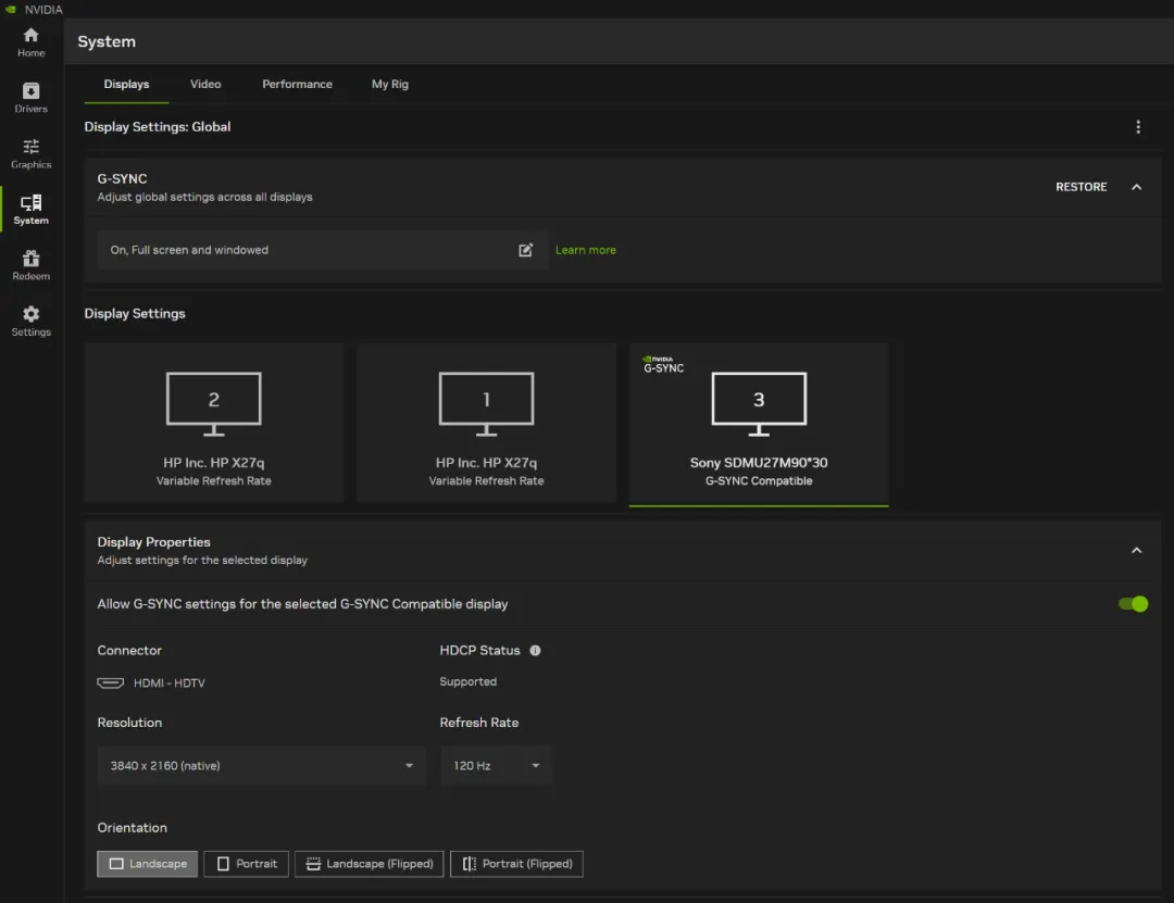系統頁面是顯示、視頻和 GPU 選項的一站式平臺,包含增強的性能調優功能,以安全地提升幀率。顯示器承載 G-SYNC 顯示選項、分辨率和刷新率控制以及顯示方向設置。未來將更新引入來自 NVIDIA 控制面板的其余顯示設置,例如 Surround 選項、自定義分辨率和多顯示器設置。