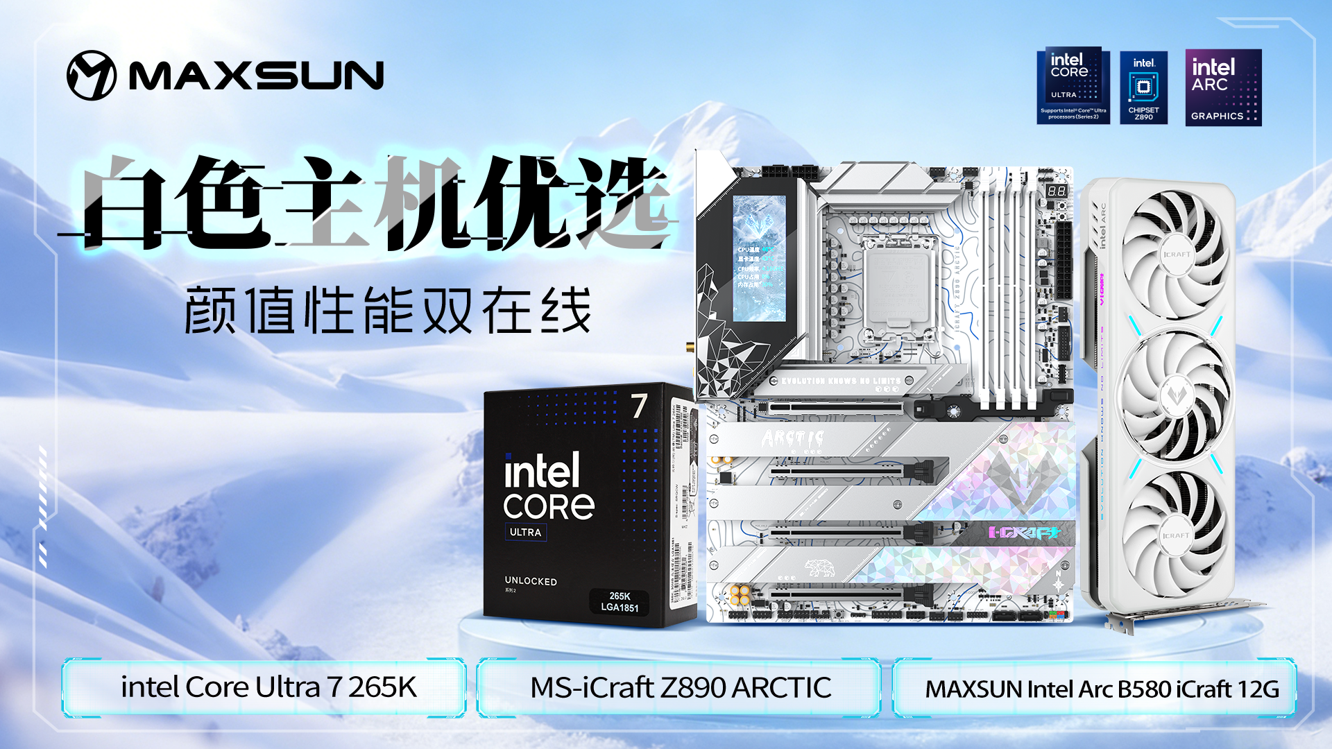 若你既想在冰雪戰場中酣戰淋漓,又渴望打造一臺與冬日主題高度契合的白色主機,那么這套英特爾酷睿Ultra 7 265K處理器搭配銘瑄iCraft Z890 Arctic主板與MAXSUN Intel Arc B580 iCraft 12G顯卡的“冰刃三件套”,就是你的年末煥新優選。這套組合以驚艷外觀呼應冰雪主題,以強悍性能駕馭高畫質戰場,為你沉浸式體驗《戰地6》保駕護航。
