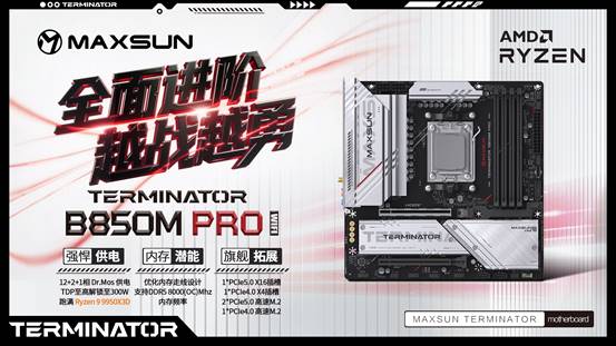 在此推薦兩款高度適配歲末煥機(jī)需求的優(yōu)質(zhì)之選——銘瑄Terminator B850M PRO WIFI和Terminator B850M PRO DARK WIFI主板。這兩款主板不僅能完美搭配AMD銳龍7 9800X3D處理器,釋放處理器的強(qiáng)勁性能,更以一黑一白的個(gè)性設(shè)計(jì),滿(mǎn)足不同玩家的主機(jī)打造需求,讓你的元旦假期游戲體驗(yàn)全面升級(jí),戰(zhàn)力飆升!