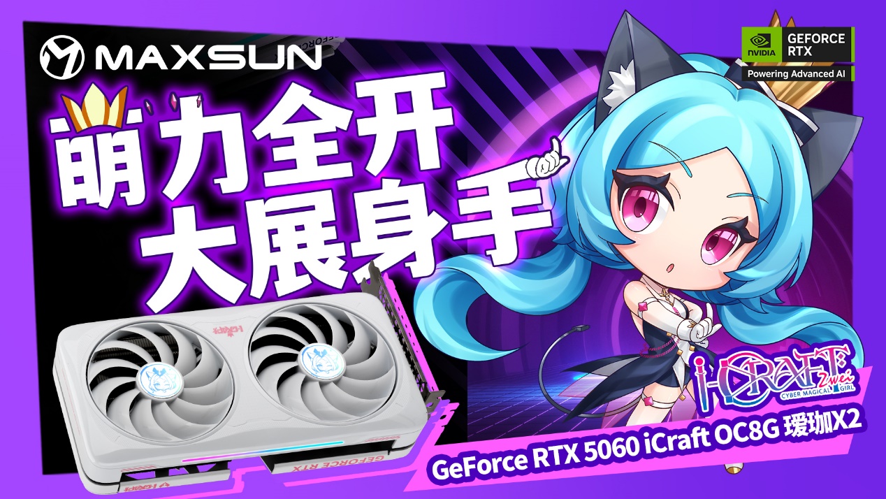 若你是學(xué)生黨或偏愛緊湊機(jī)箱,追求1080P分辨率下的高幀率對戰(zhàn),銘瑄GeForce RTX 5060 iCraft OC8G 璦珈X2顯卡+銘瑄iCraft B760M CROSS璦珈主板的組合,既能以高性價比滿足需求,更能將二次元顏值拉滿,讓桌面主機(jī)成為宅家吸睛亮點(diǎn)。
